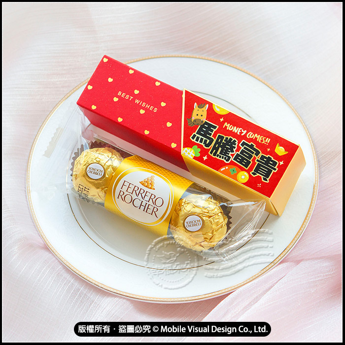 萬馬奔騰,富貴上門!✨ 迎接馬年,最應景的開運小禮物登場! 我們將經典的金莎巧克力與創意木質磁鐵結合, 包裝設計融入「馬騰富貴」祝福語, 讓收到禮物的人在馬年一開春就「馬到成功」、財氣滿滿! 多用途場景: 馬年送親友:生肖專屬禮物,最具紀念意義。 尾牙/春酒桌上禮:每位賓客一份,祝大家馬年行大運,氣氛最熱絡。 公司開工禮:發放給員工,寓意公司業績「馬騰富貴」。 活動來店禮:高 CP 值、高質感的選擇,提升顧客回訪率。 禮包內容: 1.g4031馬騰富貴閃金盒金莎3入X1盒 2.g2905旺字木質春聯磁鐵X1個 3.g4041紅色小禮物袋X1個(已貼5cm好運旺來貼紙,需DIY裝入) 4.44cm金色緞帶X1條(需DIY綁上) 請常溫保存乾燥陰涼處,避免高溫、潮濕及陽光曝曬處。 期限:至少180天以上 ♥︎若大量訂購下訂前務必先詢問庫存數是否足夠喔!