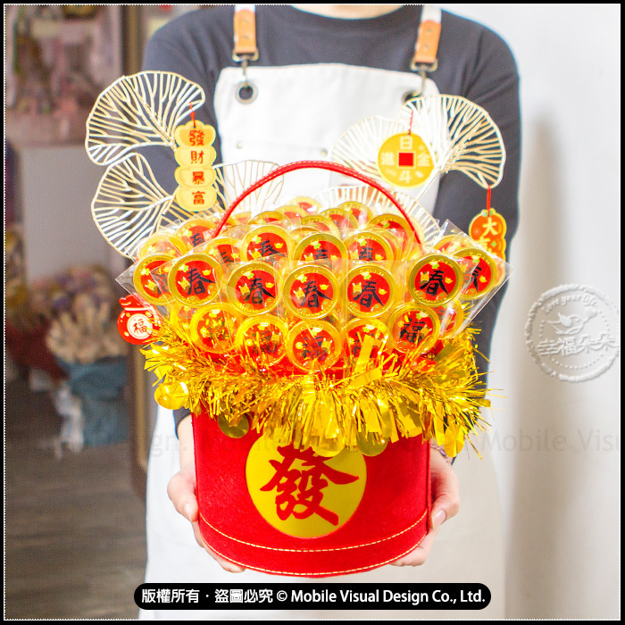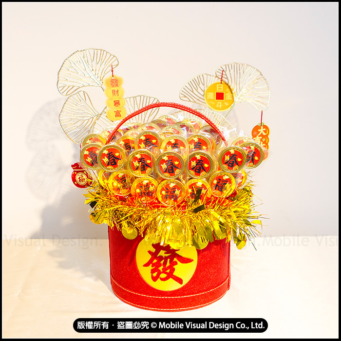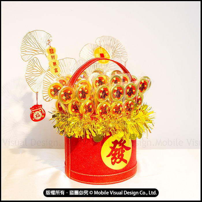 過年發財小禮籃 【日進斗金 串串2入金幣巧克力棒30入】 (新品上市特價中)