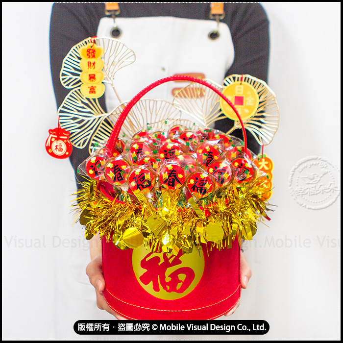 新年福桶小禮籃 【萬事都棒 春來福到梅子棒棒糖24入】 (新品上市特價中)