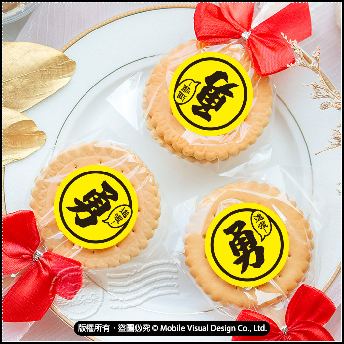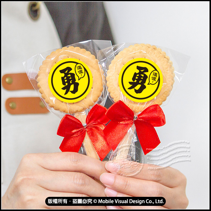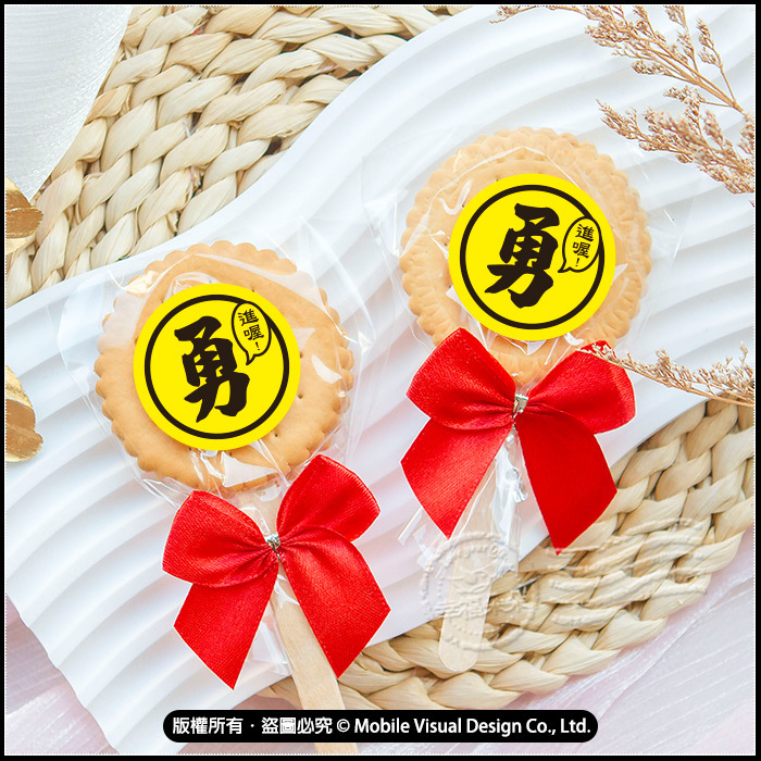 白沙屯媽祖進香必備! 經典「勇」字與「進喔!」視覺設計,搭配職人手工麥芽餅。每支均含獨立精緻包裝與亮紅大蝴蝶結,質感滿分。本商品採「預訂客製」,確保您在結緣當天拿到最新鮮酥脆的餅乾,是香燈腳傳遞心意最體面的選擇。 視覺設計:經典黃底黑字「勇」字貼紙,加上活潑的「進喔!」對話框,完美契合進香文化。 精緻包裝:每支麥芽餅皆有獨立透明袋封口,並手工繫上質感紅緞帶蝴蝶結,讓簡單的餅乾變得更有誠意。 職人風味:嚴選酥脆牛奶餅乾夾入香 Q 麥芽糖,口口酥脆、不黏牙、不過甜,長輩小孩都適合。