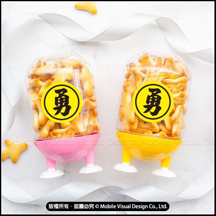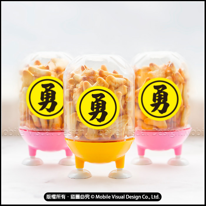 獨家造型設計: 可愛的小腳丫罐身,象徵著跟隨媽祖腳步的「勇腳」精神。 經典美味: 內裝香脆飛機餅乾,是男女老少都愛的古早味零食,分享最省心。 精緻勇字貼: 罐身醒目的黃底黑字「勇」字,傳遞滿滿的正能量與祝福。