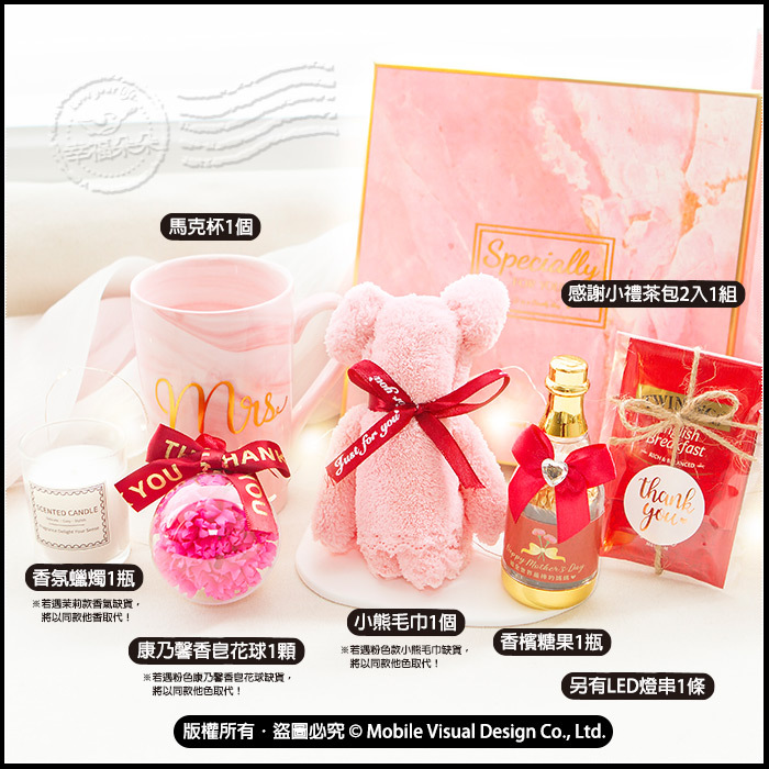 還在煩惱母親節要送什麼嗎? 這款【大理石L款禮盒】一次結合「生活實用+療癒香氛+浪漫花禮」, 讓媽媽收到不只開心,更能天天使用與回味💖 這份禮盒,融合實用與儀式感, 不僅療癒身心,更讓媽媽感受到被重視與感謝的溫度。 讓我們在這個特別的節日,對媽媽說一聲: 「母親節快樂,謝謝您一直都在💐」 🎁 內容物如下 馬克杯1個 茶包2入1組 茉莉香氛蠟燭1個 母親節主題金莎香檳瓶1瓶 康乃馨香皂花球(玫紅)1顆 小熊毛巾1個 LED燈串1條 同款紙袋1個 💎 商品特色 ✔ 大理石紋設計|簡約高級質感,送禮超有面子 ✔ 精緻禮盒包裝|免再另外包裝,直接送出 ✔ 實用型內容物|不只是好看,更貼近日常生活 ✔ 節慶首選|母親節送禮超適合 ✔ 現貨供應|快速出貨,不怕來不及送禮 🎀 適合送禮對象 ・媽媽 / 岳母 / 長輩 ・老婆 ・公司送禮 / 客戶禮盒 🌷 使用情境 母親節驚喜、家庭聚餐送禮、表達感謝心意 一份簡單卻充滿心意的禮物,讓對方感受到你的用心✨