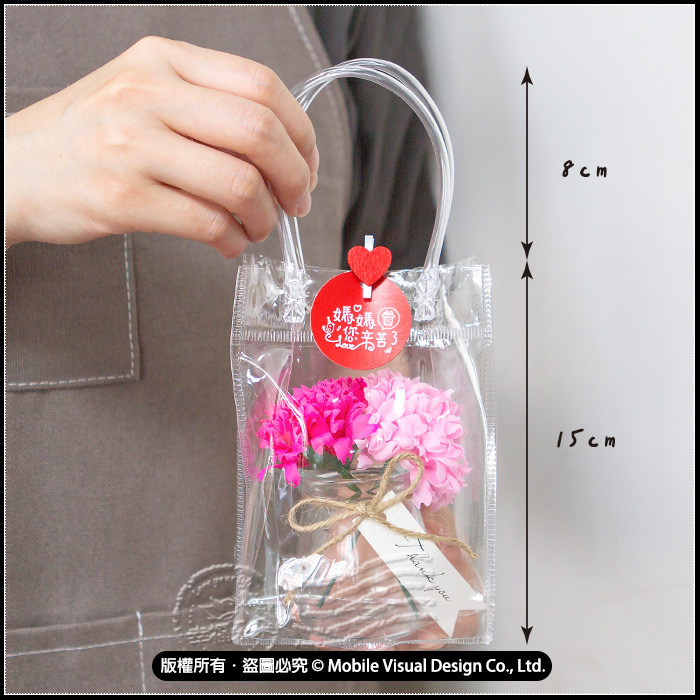 透明袋約 寬10 x 高23 x 側寬5cm (含手提) 玻璃瓶約 瓶口5cm x 瓶高7cm 香皂花約 花朵直徑5cm x 高10.5cm (總重約110g) 內容物手工製作,多少會有些微誤差喔! 不介意才下訂 |
