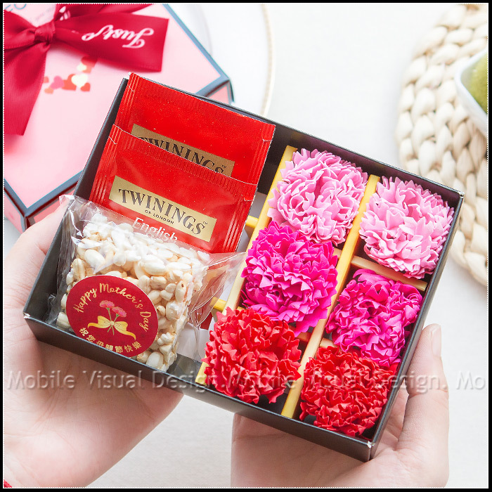 母親節限定-米香1入+唐寧茶包2入+6朵康乃馨香皂花禮盒 (新品上市特價中)