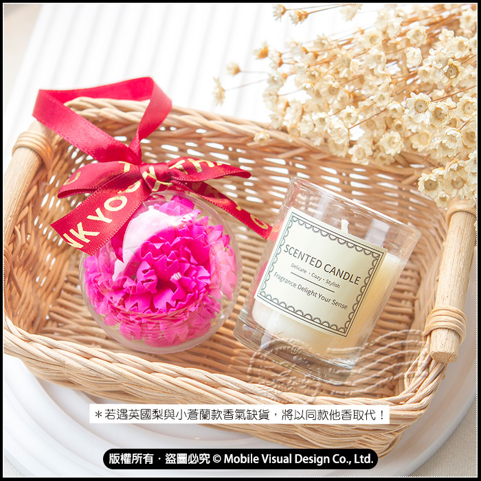 母親節禮物推薦 送禮組合禮袋E款 (拾光香氛蠟燭+康乃馨花球吊飾) -附袋子緞帶需diy組裝 (新品上市特價中)