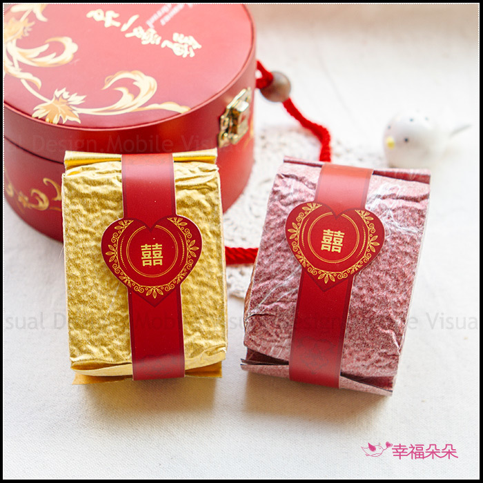 金紅配對,象徵「扶持到老.恩愛相隨」的意思! 別具涵意唷! 喜米外包裝是走復古仿舊設計風喔😊 會介意者請斟酌再下訂!