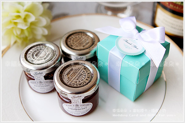 *採用歐美Tiffany經典藍小禮盒,搭配五星級飯店採用的英國進口Tiptree小果醬,絕對是超夯的婚禮小物喔。