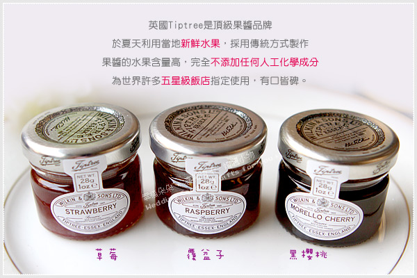 *英國Tiptree果醬為於夏天利用當地新鮮水果,採用傳統方式製作,完全保存英國鄉間風味,由新鮮果粒製成,採古法小量熬煮。果醬的水果含量高,完全不添加任何人工化學成分,整體呈現飽滿豐腴、自然天成的紮實肌理,為世界許多五星級飯店指定使用,有口皆碑。