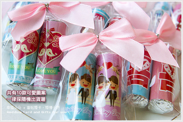 迷你曼陀珠,隨時隨地給您好心情!每條均貼有幸福朵朵獨家設計,並由2條曼陀珠組成一包裝,象徵新人雙雙對對、萬年富貴的喻意唷❤每份均有精美蝴蝶結包裝,非常討喜!