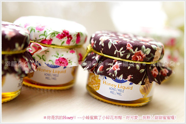 *可愛小碎花的布帽有米色及咖啡色底,搭配五星級飯店採用的瑞士進口喜諾Hero小蜂蜜,絕對是超夯的婚禮小物喔。