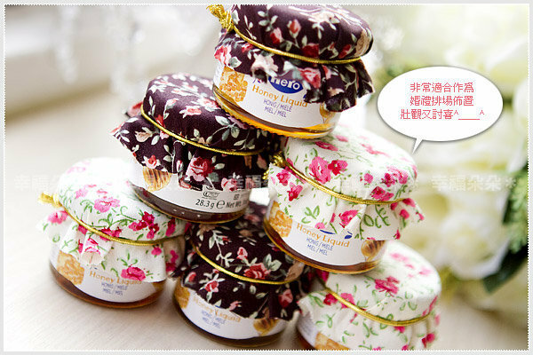 *可愛小碎花的布帽有米色及咖啡色底,搭配五星級飯店採用的瑞士進口喜諾Hero小蜂蜜,絕對是超夯的婚禮小物喔。