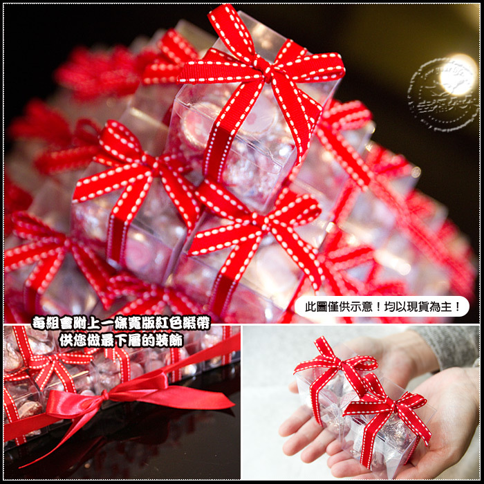 每一顆巧克力約直徑2cm圓x高2cm 禮盒約寬5x5x5cm 整座約寬30x高30cm 內容物手工測量,多少會有些微誤差喔! 不介意才下訂