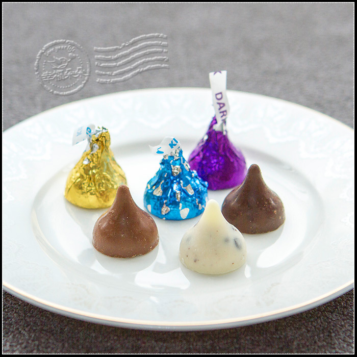 [HERSHEY'S KISSES brand]-Say it with kiss. 西元1907年好時先生嘗試將巧克力醬直接擠在鋼帶上冷卻成型, 意外發現巧克力醬在鋼帶上形成了可愛的平底水滴造型。 據說擠出巧克力醬的聲音就像情人親吻的聲音, 而吃的時候將尖端對著嘴唇,也像情人親吻一樣, 所以這款型的巧克力因此命名為Kisses。