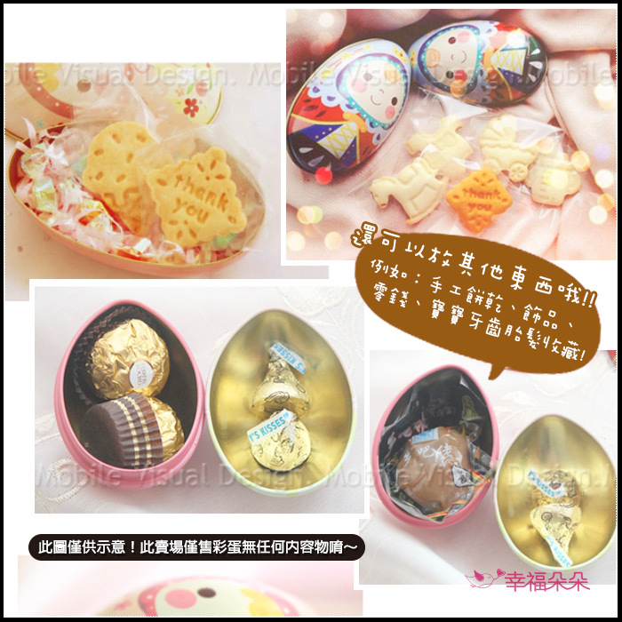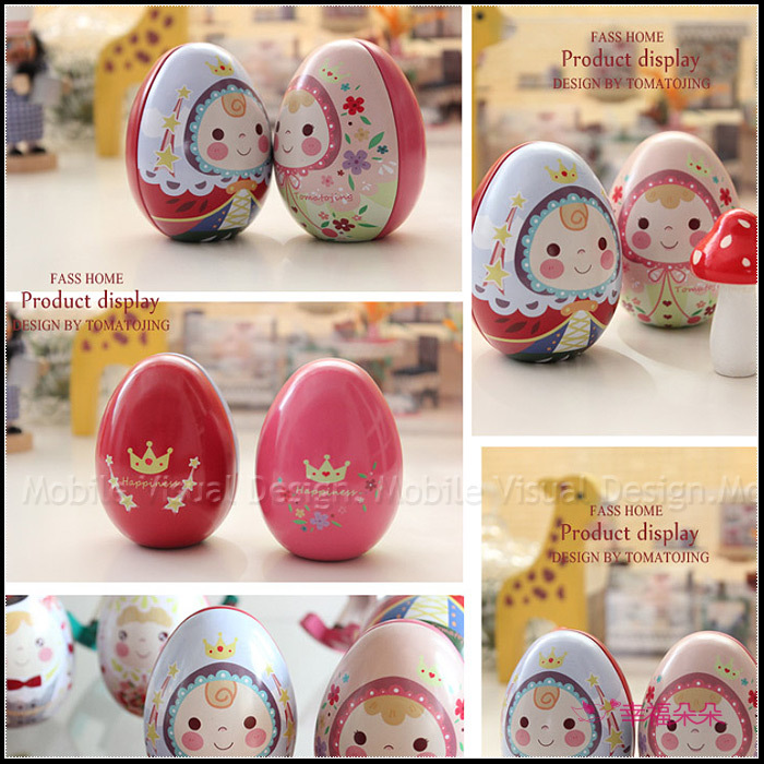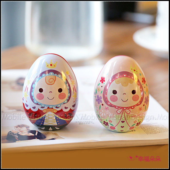 可愛的王子與公主圖案彩蛋馬口鐵盒,甜甜的笑容讓人會心一笑,好比王子與公主過著幸福快樂的日子,也寓意著小王子與小公子是父母的掌心寶貝喔!大小比健達出奇蛋還大一些,可裝得下兩顆金莎喔!若裝好時水滴巧克力可裝到10顆!而且這款是可以「站立」的,擺在桌上超療癒♪♪