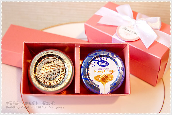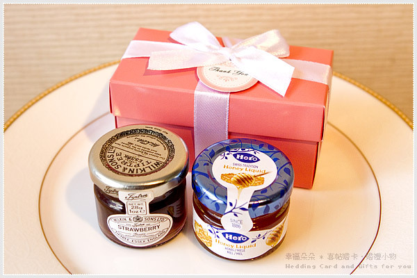 *每份小禮盒中均會裝入Tiptree果醬1瓶+Hero蜂蜜1瓶喔! 此商品已幫您手工製作好了喔!不用再自己DIY了! (內裝好果醬+蜂蜜,緞帶綁製完成並贈送精美的小圓卡喔!) *訂購滿200份以上,小卡可加上客製姓名,每張只要額外加3元!