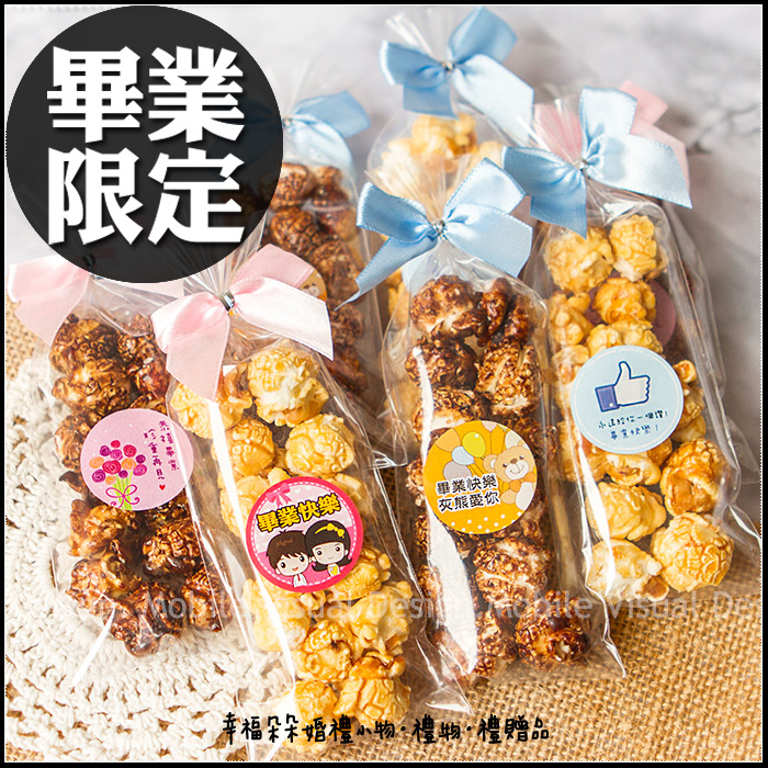 畢業禮物-畢業快樂輕巧包爆米花.焦糖/巧克力2口味可選 (4款貼紙混合) (新品上市特價中) |