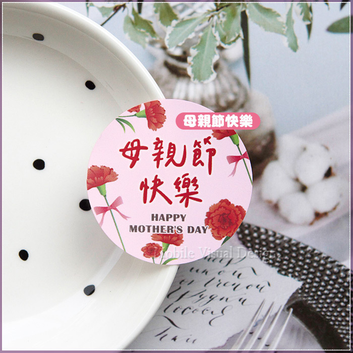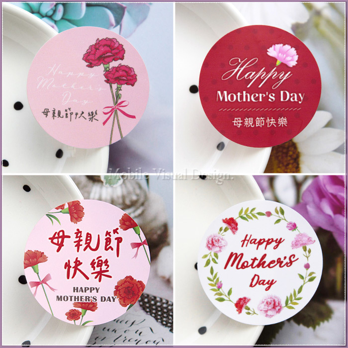 #母親節貼紙 #母親節 #康乃馨 #康乃馨貼紙 #圓形貼紙 #禮物貼紙