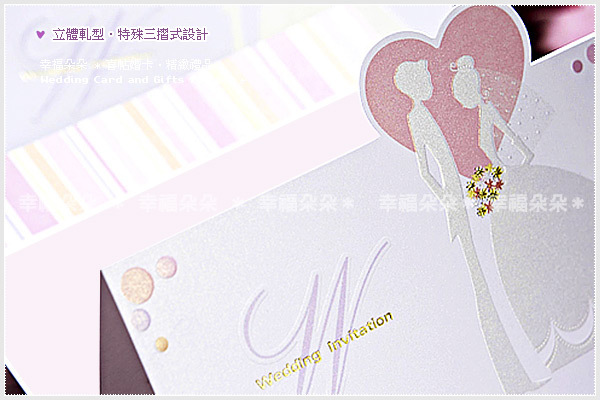 由韓國設計師操刀,運用時尚色彩及特殊形立體效果,突破格局、令人印象深刻的特別婚卡。Designed in Korea。