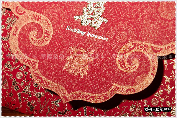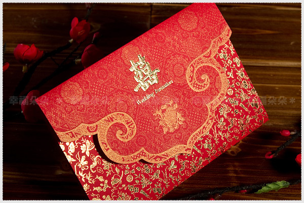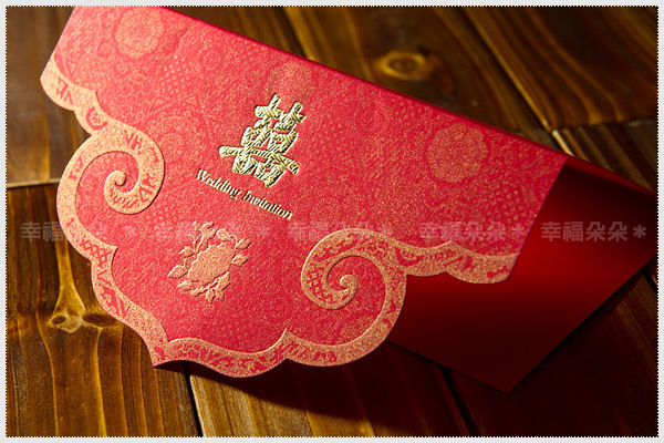 使用中國風如意圖騰做軋型,燙上大大的囍字,非常討喜,是結合長輩喜愛的紅色,又帶有西式時尚感。特殊三摺式設計襯出喜氣滿盈的金色,象徵富貴吉祥好兆頭。Designed in Korea。