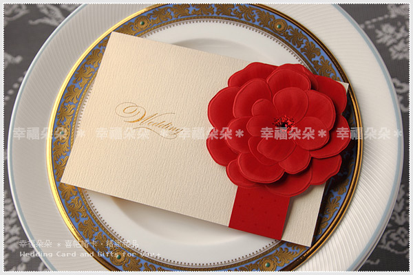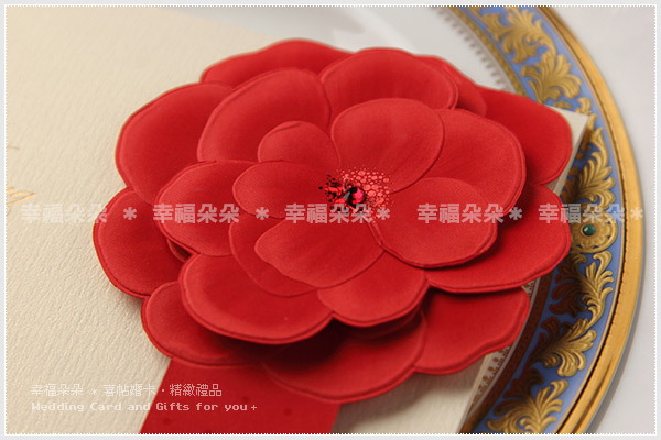 富貴的牡丹古典與現代感的結合,為您們的幸福揭開喜氣的序幕,上面貼的紅色寶石讓賓客都感受到婚禮的洋洋喜氣。Designed in Korea。