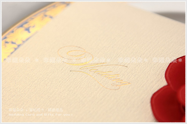進口紅紙牡丹花割型,內文進口卡紙+下頁燙紅金。