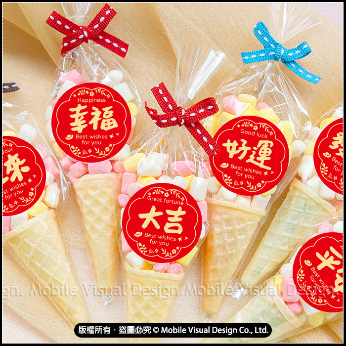 過年糖果 新年喜氣2字版 迷你甜筒棉花糖 (新品上市特價中)